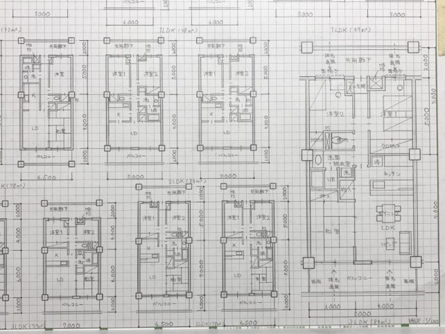 住戸プラン(1LDK~4LDK)の基本形を覚える為、書きまくりました写真になります