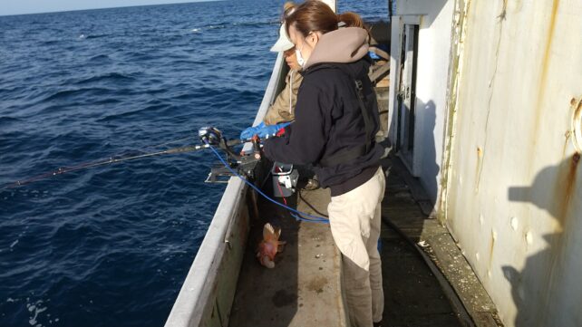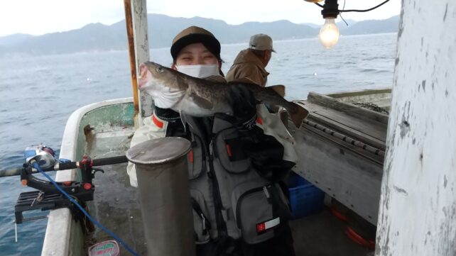 船釣りの経験者が2人しかいなく(当社社長と伊藤)当社の釣りガール3人は初の遊漁船での体験と