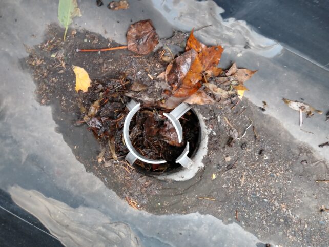 このままにしておくと配管の中で落ち葉が詰まり水が流れなくなります、