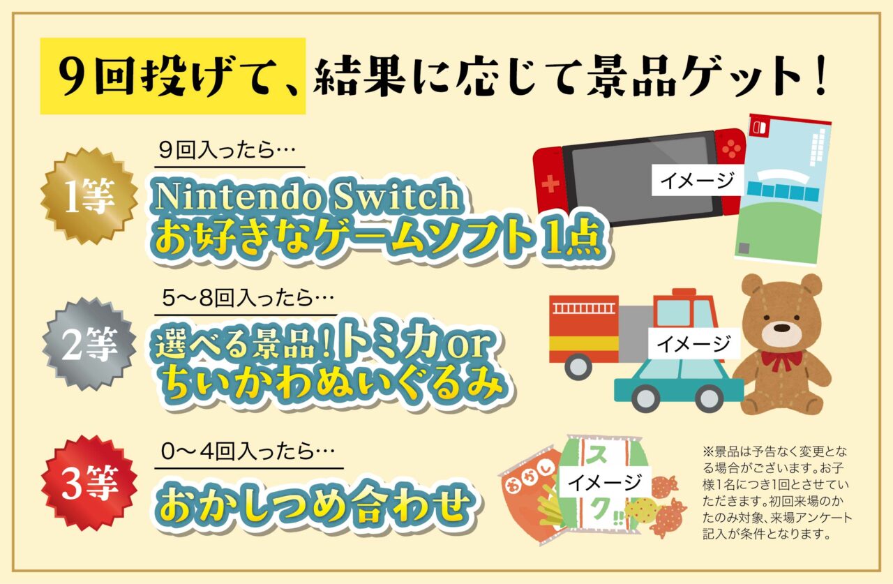 ▼▼▼イベントでは、小学生以下のお子様限定!豪華来場特典がもらえるわなげチャレンジも!▼▼▼