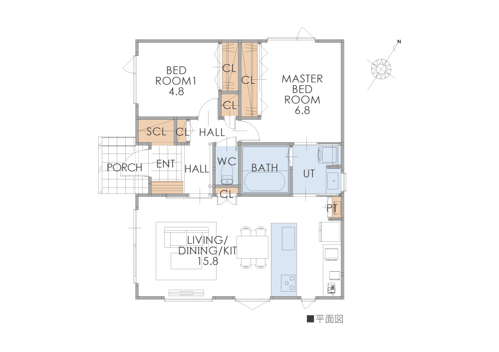 玄関・洗面・UT・キッチンがぐるりとつながる回遊動線を採用。