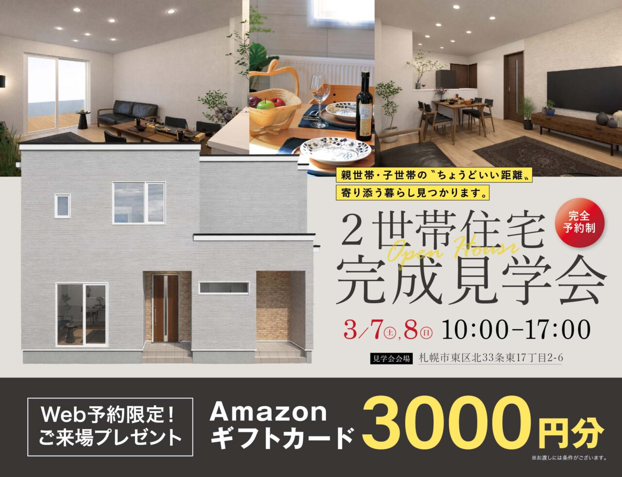 〈完全予約制〉「バリアフリー設計の2世帯住宅」完成見学会🏠3/7、8