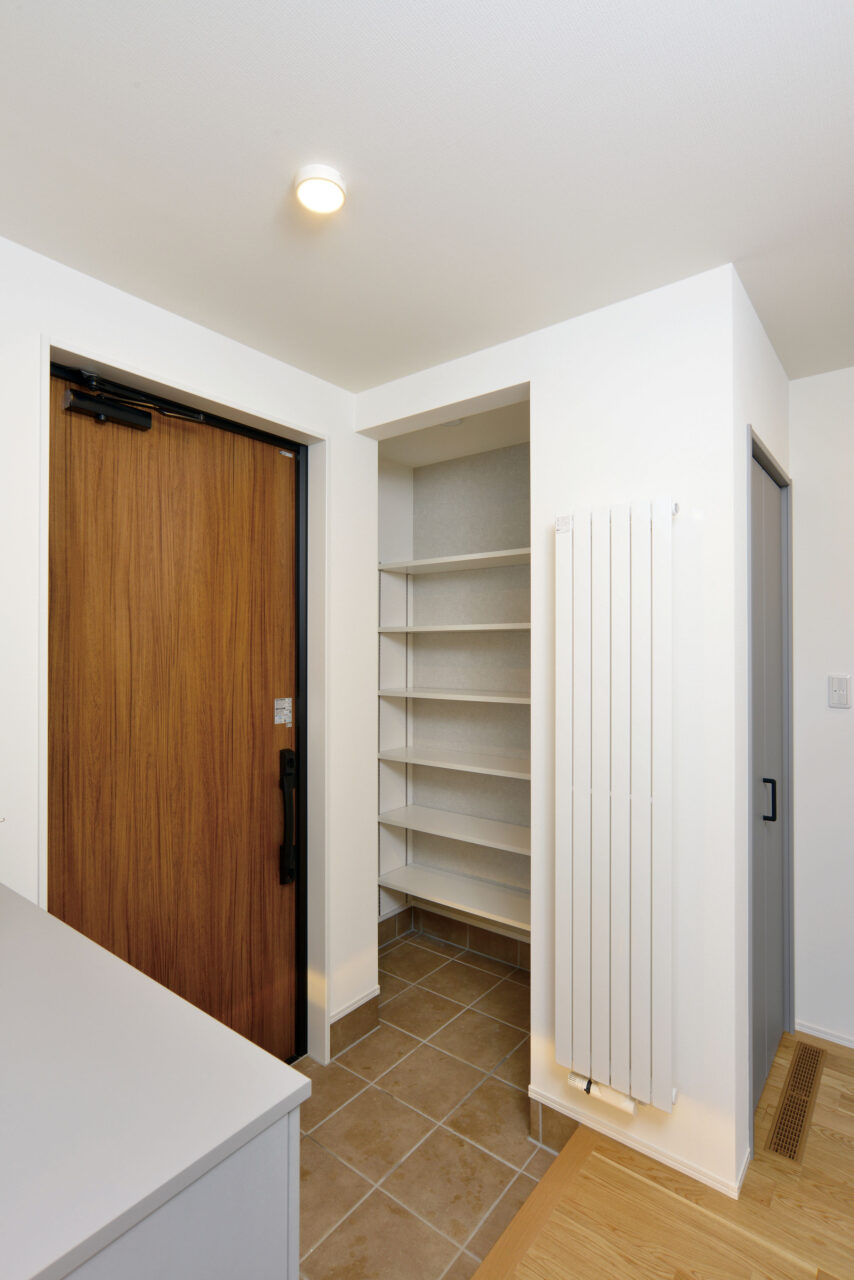 玄関横にはシューズクローゼットを完備!靴以外にもアウターやベビーカー、スコップ置き場にも最適です。