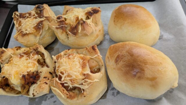 ベーコンとポテトのジャーマンポテトパン と 歯ごたえばっちりのコッペパン(見た目バターロールっぽいですが)