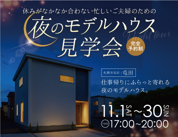 弊社では11月、月間イベントとしまして屯田モデルハウスにてナイター見学イベントを開催!