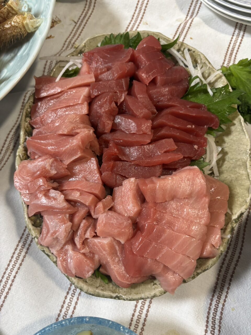 親の知人が函館の隣町の戸井町でマグロ漁をしている方と知り合いらしく生の本マグロの塊(1.5㎏)を手に入れました。