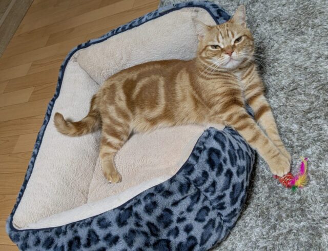 おもちゃを取りたいけど、横着している猫(取ってくれの顔)