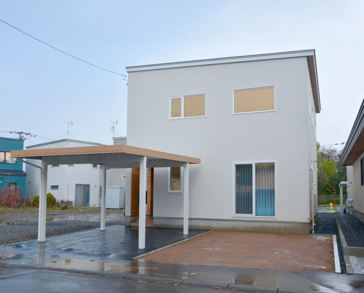 白を基調とした外観と内装には、随所に木目のあたたかみやアクセントカラーが加えられ、モダンながらもやさしさを感じる住空間に。